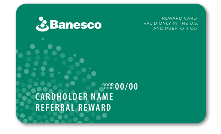 Receive a $50 Visa Reward Card when your friend registers, opens a new Banesco USA personal money market account and completes the following within 60 days of account opening:- Funds the new account with $2,500 or more, AND